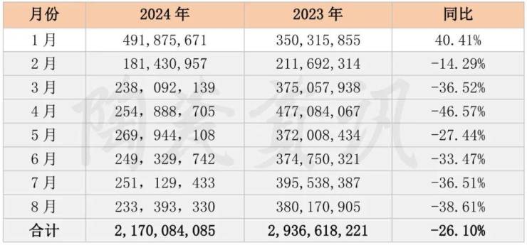 陶瓷资讯根据海关统计数据分析,2024年8月,我国陶瓷砖出口总额为2.33亿美元,同比下滑38.61%;按人民币计算,2024年8月,我国陶瓷砖出口16.64亿元, 同比下降38.83%。(ps:此处美元计与人民币计,涨跌幅度有出入。)