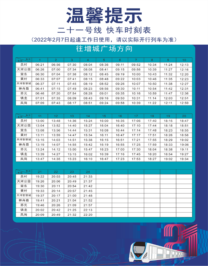 为满足客流变化需求,提高乘客服务质量,自2月12日起,十四号线和二十一号线快车时刻表均有所调整,为方便小伙伴们出行,小编马上整理新版给大家分享了,有需求的小伙伴赶紧收藏吧!