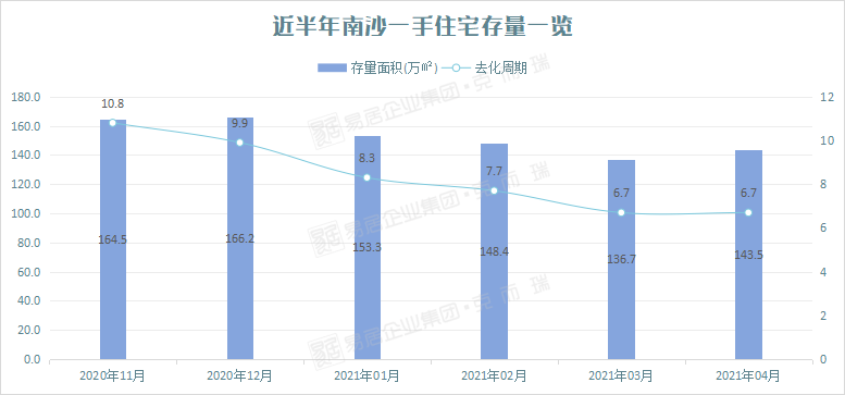 据克而瑞数据统计,截至4月末,南沙区一手住宅存量143.54万㎡。