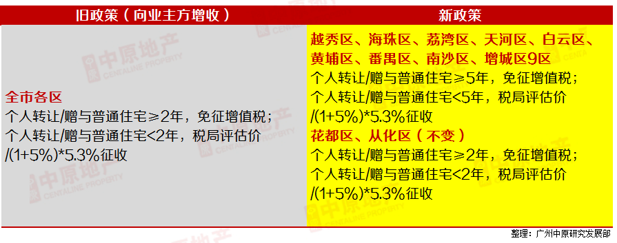 本次“通知”另一备受关注的细则为越秀、海珠、天河等9区增值税免征年限“2变5”,而从化、花都则维持原2年免征期限不变。