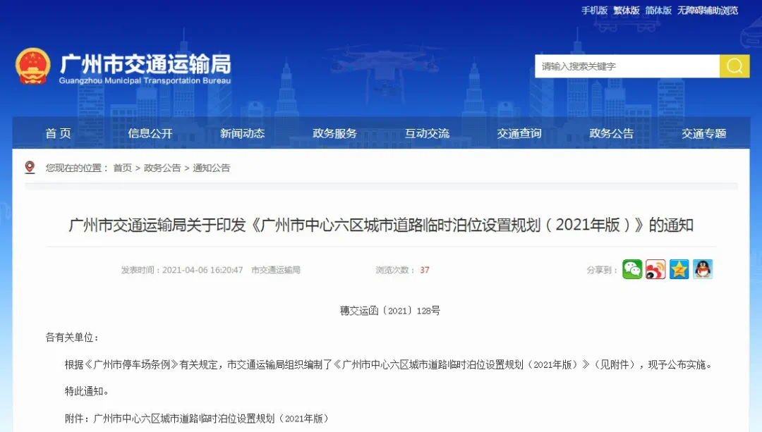 4月6日,广州市交通运输局公布实施《广州市中心六区城市道路临时泊位设置规划(2021年版)》。本次规划调整共涉及路段394条,涉及泊位数或可停放车辆数11764个。其中,涉及白云区的有27条路段。