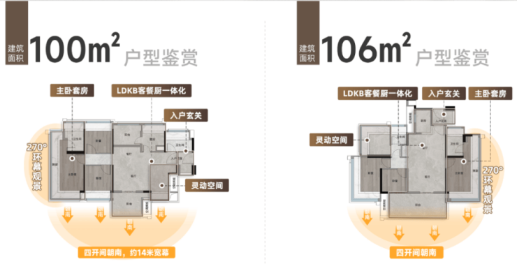 最后,是户型与家庭需求的“精准契合”。产品以建面约100-138㎡的全能四空间为载体,通过LDKB一体化方厅的设计,最大化拓展了家庭公共活动区域,促进家人互动。主力户型四开间朝南,并通过对建筑朝向与楼栋法线的精密排布,确保无遮挡观景视野。主卧套房配备270°全景窗,将山景引入私密空间。而全屋800库系统收纳,则解决了居住中的杂乱痛点,让舒适与美感得以兼得。