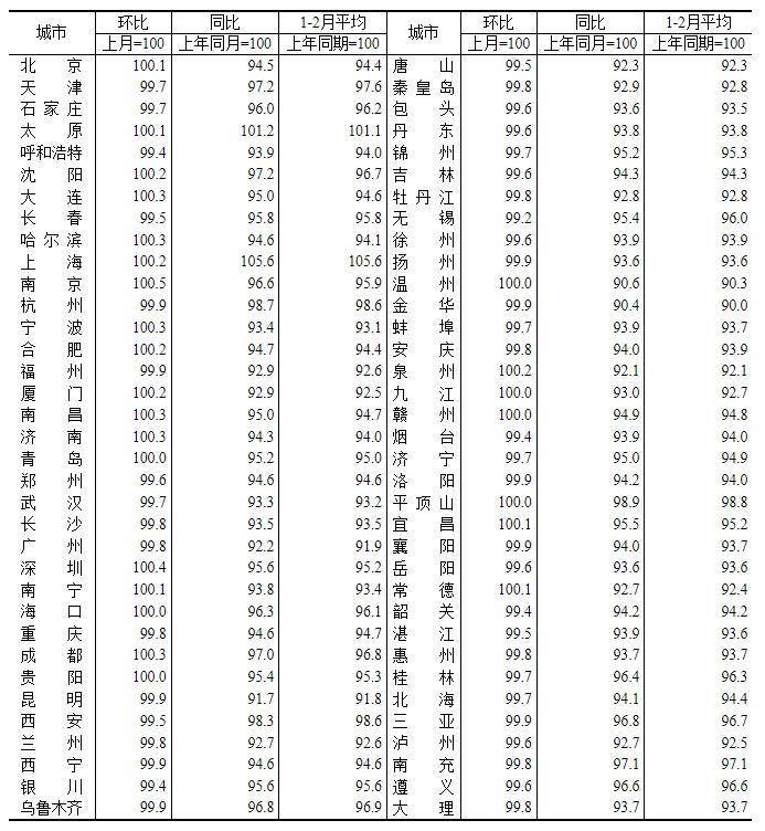 2月全国70城房价出炉:18城新房价格环比上涨