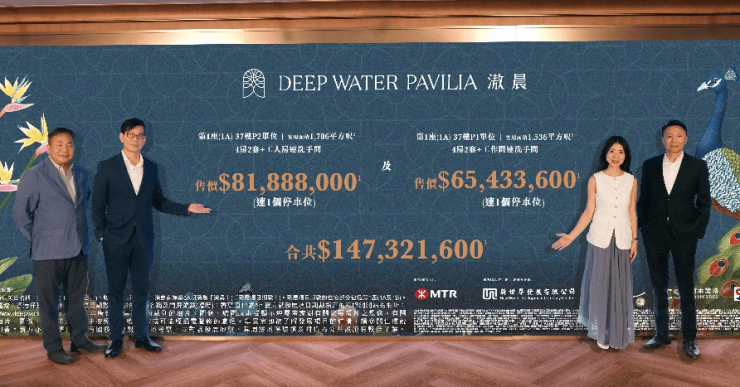 “DEEP WATER PAVILIA 滶晨”在短短三日火速售出19套面向深水湾珍藏大宅,合共销售额逾11亿港元,每套平均成交价近5,850万港元,平均每平米售价超43万港元(近4万港元/平方呎),并创下本年度首个单日标售逾10亿港元超级豪宅新市场纪录,其中有外籍买家,一掷1.47亿港元连购两套珍罕大宅,最高每平米售价近52万港元(达4.8万港元/平方呎),创港岛南岸近4年成交价格新高,买家不乏本地高净值客户,足证市场对新世界品牌及产品充满信心。