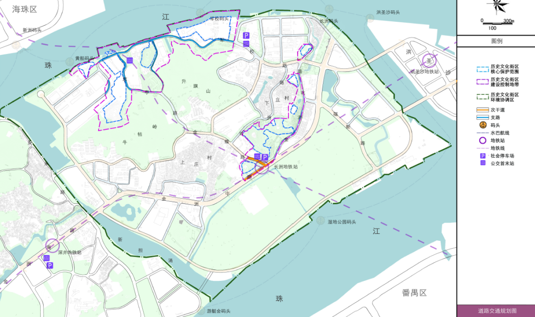 地铁 7 号线二期在街区范围内设长洲站,与 8 号线换乘,加强常规公交、自行车等与地铁站的接驳。