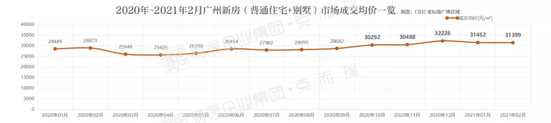 当然,创收的另一方面也是由于广州新房(口径仅计入普通住宅+别墅,不含公寓以及车位)成交均价不停攀升,据了解,自去年银十后,广州新房成交均价一直稳定在3字头,截至2月底,较新均价为31399元/平。(跳转浏览热文:2021牛气开局!单月2914套5万+房源售出!)