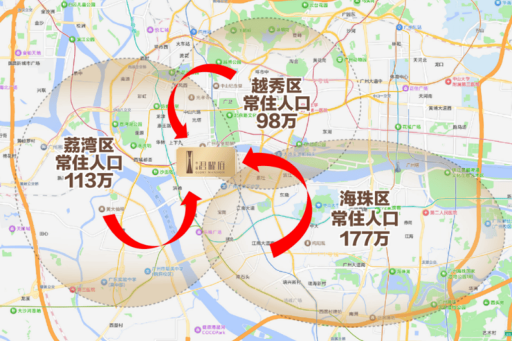 也不单单是海珠西客户,由于配套优势以及海珠桥头堡,市二宫作为越秀区向南外溢首站,拥有承接越秀区几十万焕新居住的外溢置业需求。越秀区客户以前为追求越秀区学校配套、便捷和舒适的生活方式,屈身于老破小,放弃居住空间舒适,如今,一碗汤或一手劲歌金曲不到的时间就可两岸工作与生活,会激活他们的置业冲动,会吸引众多越秀区外溢客户。同时,由于市二宫对比荔湾区西边和芳村更核心,亦会吸引众多荔湾进阶客户。