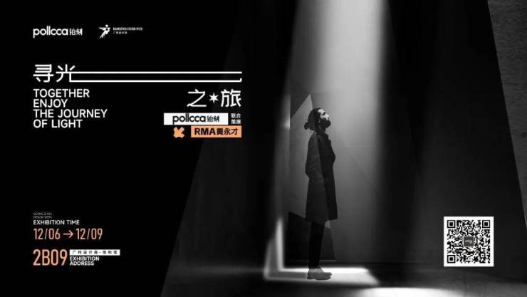 此次pollcca 铂刻品牌首展亮相广州设计周,特邀设计师鬼才RMA 黄永才联合策展,用鲜明的设计语言重塑光与空间的链接,于保利馆2B09打造以“寻光之旅”为主题的光影盛宴。