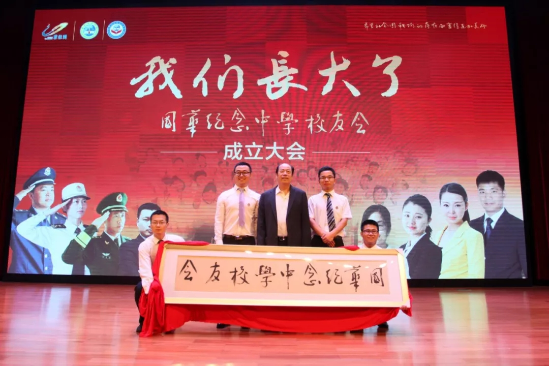 2016年6月26日,国华纪念中学校友会成立,杨国强(中)和国华学子们在一起