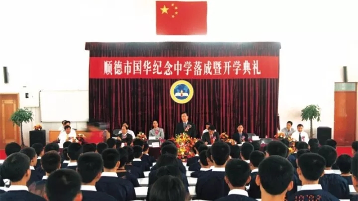这所学校,就是国华纪念中学。2002年9月,碧桂园集团主席杨国强在广东顺德北滘镇的碧江村旁,以“顺德一批民营企业家”的身份捐资2.6亿元创立了这所学校,同时为纪念其兄长,把学校的名字取名为“国华纪念中学”。
