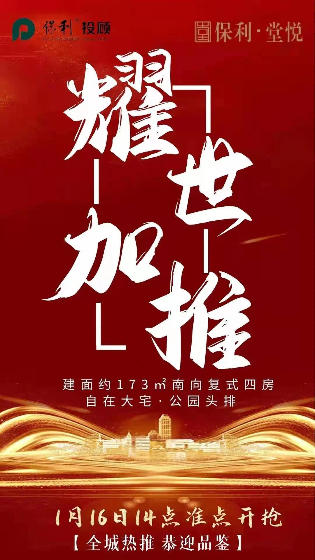 今日下午,保利堂悦加推建面约173㎡复式四房。此外,项目当前在售建面约140-178㎡平层/复式四房,均价约64000元/㎡。