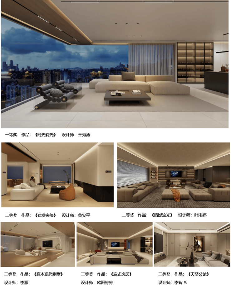 经过层层筛选和激烈讨论,评审团从室内设计、灯光设计、效果展示、创意设计等多个维度进行了多轮评审,力求选出更出彩的作品。在颁奖直播中,来自设计师王秀涛的作品《时光有光》荣获一等奖,该作品对光影层次的独到理解,以及对智能照明技术的运用,赢得了评审团的一致好评。三雄极光照明设计总监邓海南与酷家乐照明技术专家古画对该作品进行了深度解析,认为作品方案不仅在设计上展现了较高的艺术性,更在智能照明的应用上展现了前瞻性。各位设计师将智能照明技术与个性化设计相结合,实现了灯光与家居环境的完美融合,设计出既温馨又高效的居住空间,提供了美观实用的照明解决方案,展现了家居照明的美学价值。