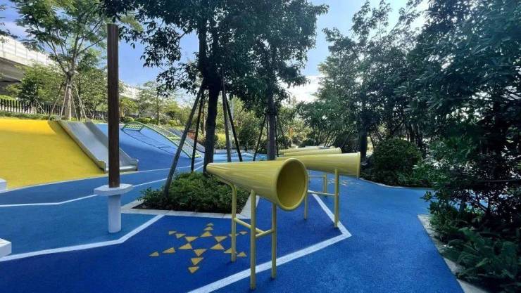 走进社区,我便能想象到在此处生活的场景。早晨,长辈们在绿荫道上散步游走,伴以清脆鸟鸣和阵阵清风;白天,小孩在全龄段游乐园与小伙伴们奔跑嬉戏,和阳光玩游戏;晚间,自律的中青年开始在环形跑道夜跑打卡,或者在活力健身区进行力量训练…
