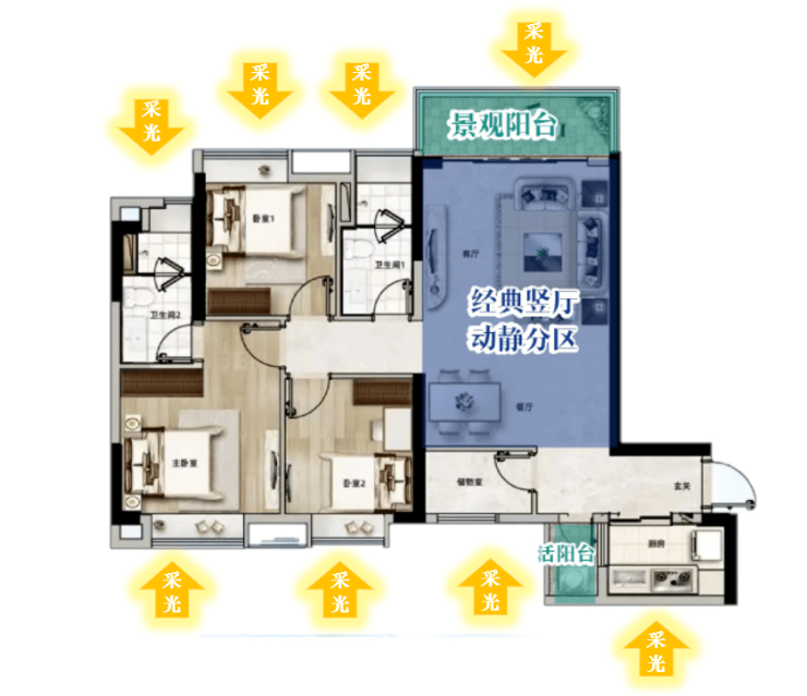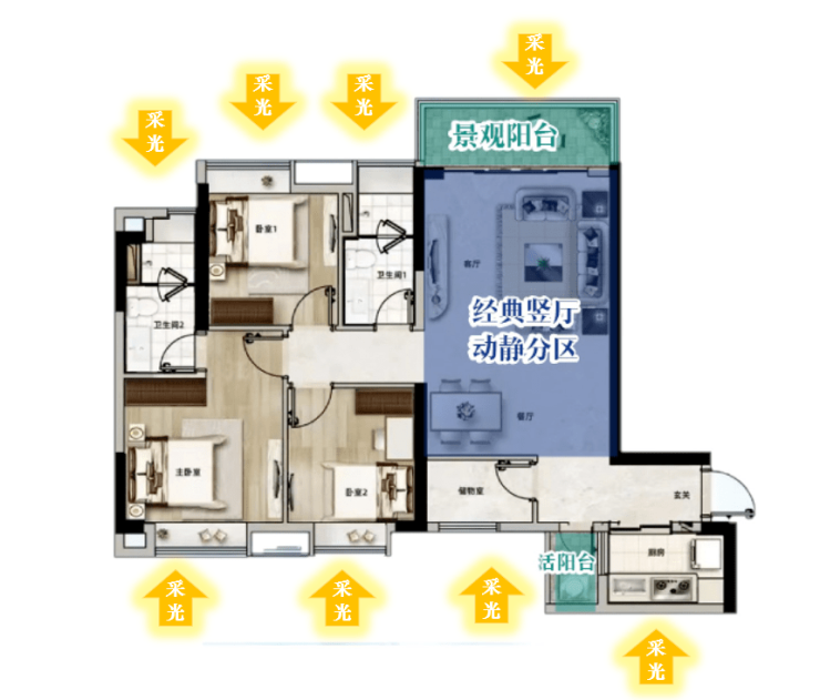 项目当前主推建面约94-129m²三至四房,无论是年轻两口之家,亦或三代同堂、二胎家庭,都能挑选到心仪的户型。