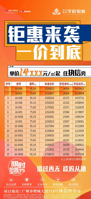 项目由广晟地产和中铁建两大央国企联袂打造的,总建面约75万方,涵盖有住宅区、商业总部大楼、花都区妇女儿童医疗中心新院区等,还配建有18班幼儿园和72班中小学,可谓妥妥的巨无霸大盘。