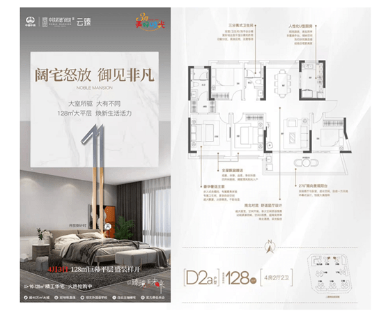 目前主推二期产品【云臻】,产品涵盖建面约90-128㎡三至四房,精装修交付。