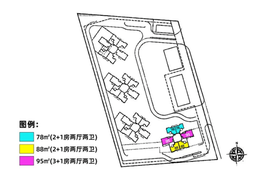 首推1#两梯六户住宅,产品包括建面约78㎡2+1房两厅两卫、建面约88㎡2+1房两厅两卫、建面约95㎡3+1房两厅两卫。