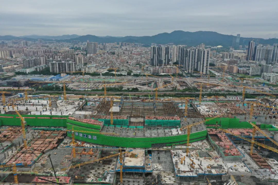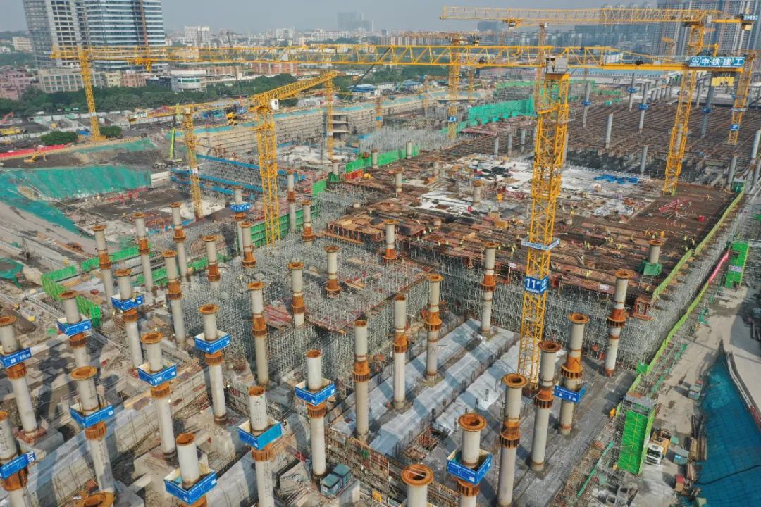 10月19日,广州白云站一期承轨层混凝土结构全部浇筑完成。