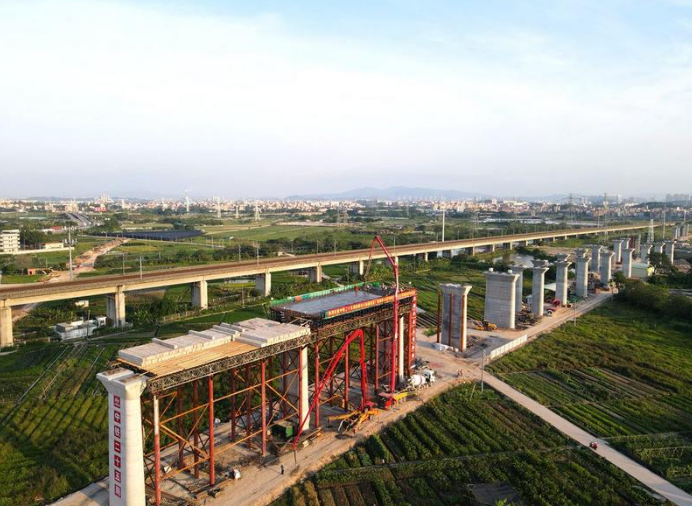5月初,京广高铁联络线1号特大桥首孔现浇梁顺利完成浇筑,为引入京广高铁创造有利条件。