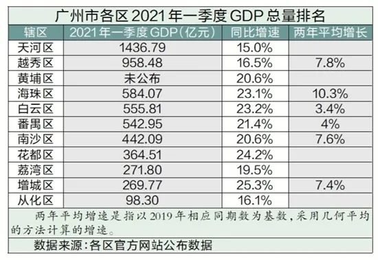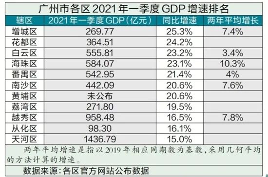 从GDP增速来看,增城区(25.3%)、花都区(24.2%)、白云区(23.2%),位列前三。