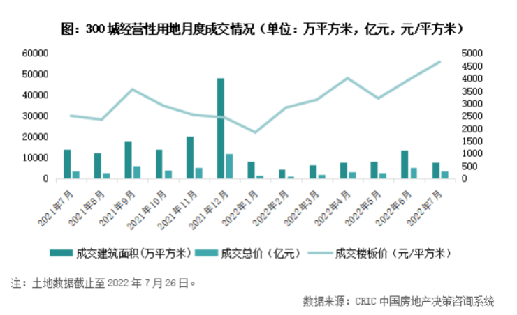 克而瑞地产研究中心发布报告称,全国300城经营性土地6月份总成交建筑面积为7803万平方米,环比下降41%,同比降幅近五成。