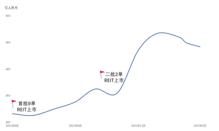 中国内地基础设施公募REITs市值(截至2022年3月)