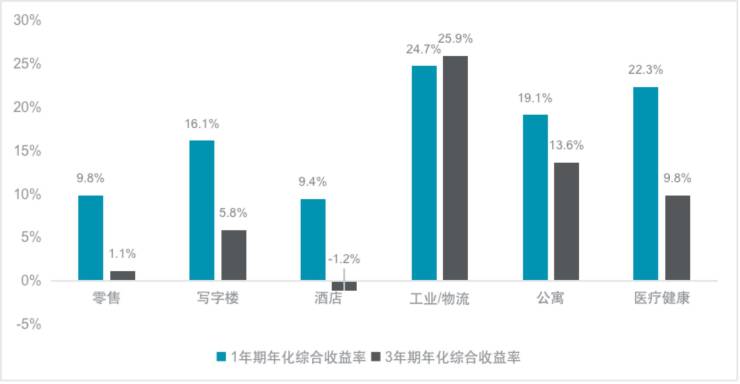 亚太REITs市场各物业类型年化综合收益率(截至2021年12月)