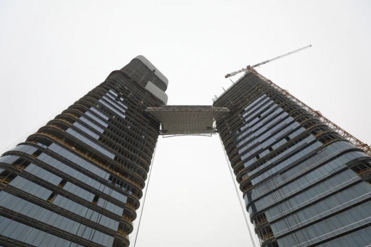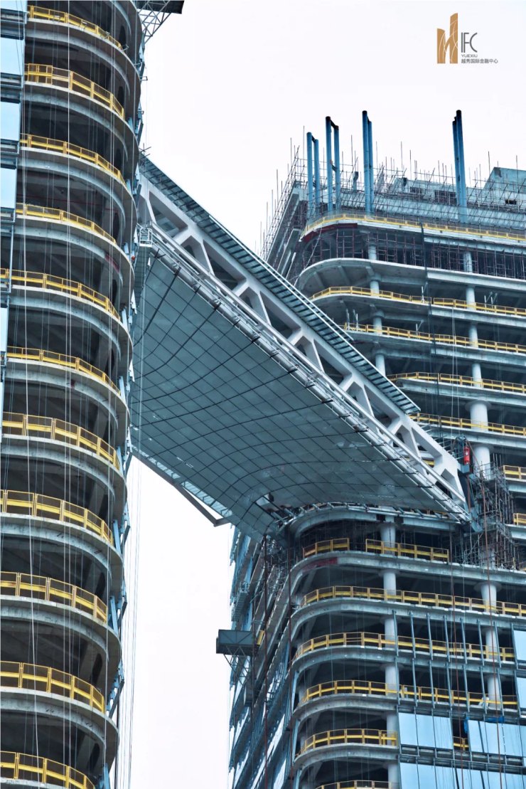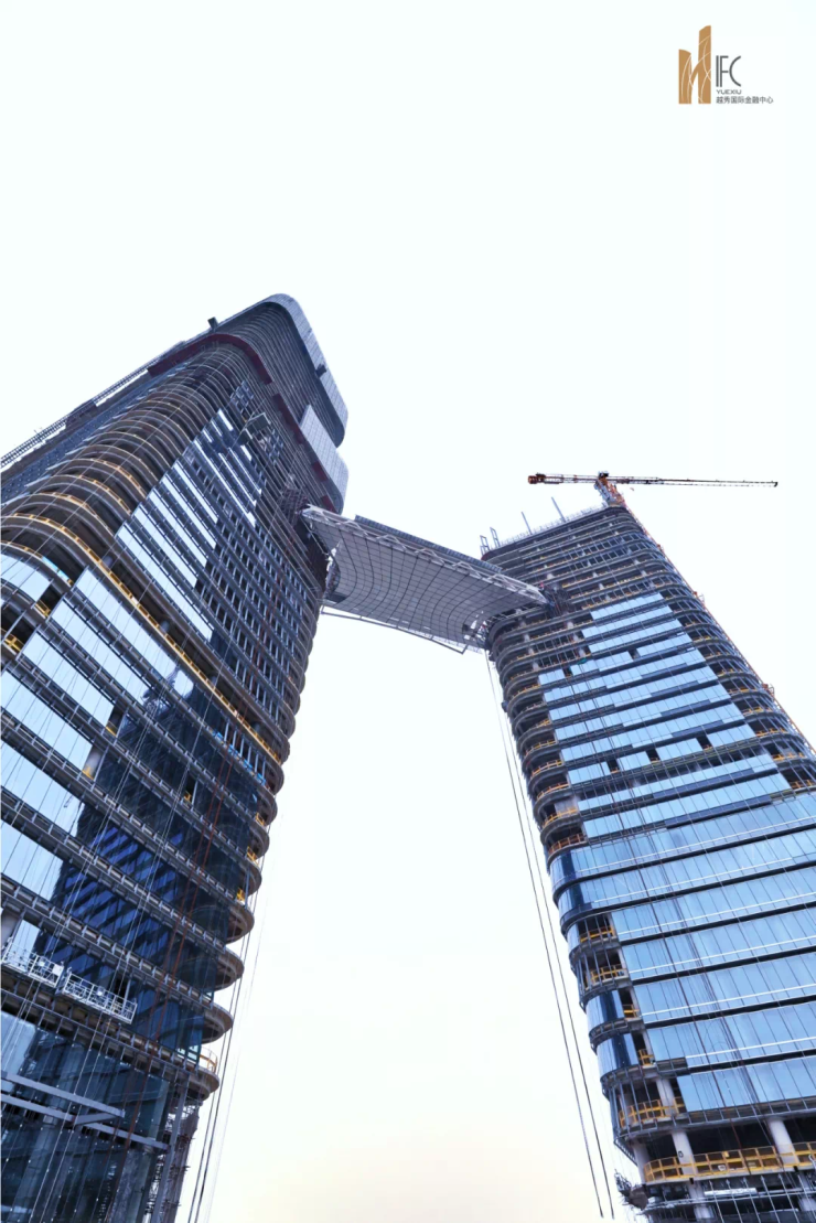 重大进展!越秀国际金融中心连廊成功提升至100米高空!