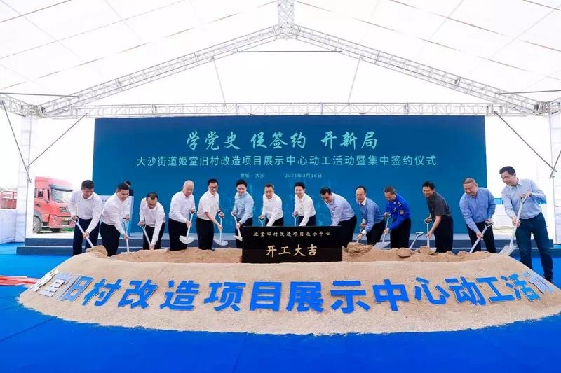 3月18日上午,大沙街道举行“学党史 促签约 开新局——大沙街道姬堂旧村改造项目展示中心动工活动暨集中签约仪式”。活动现场多位村民集中签约,姬堂旧村改造项目展示中心正式动工,姬堂党群服务中心正式开拆。