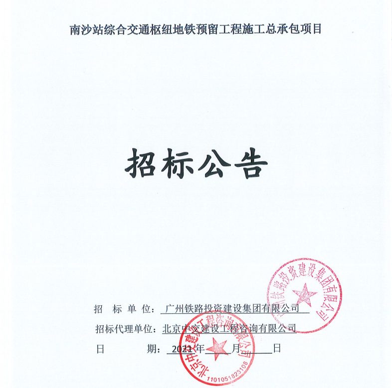 日前,广州公共资源交易中心正式公示了南沙站综合交通枢纽地铁预留工程施工总承包项目。