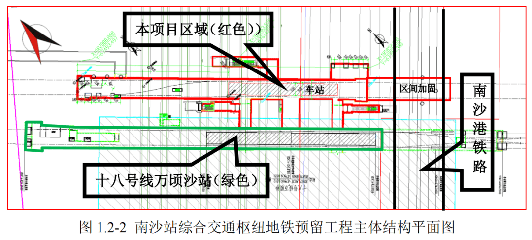 南沙站综合交通枢纽地铁预留工程位于南沙站综合交通枢纽下方。