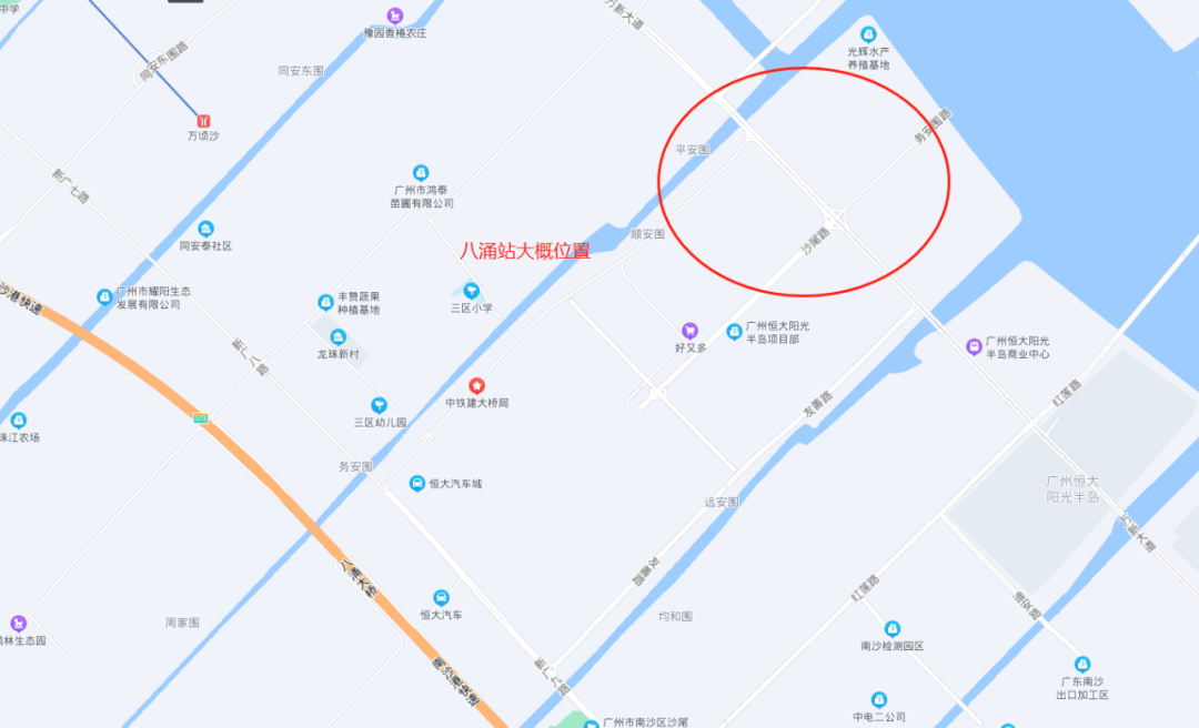值得注意的是,线路的具体走向是首次曝光,而且首次出现八涌站和与三十一号线换乘,短短几句话信息量巨大,从字面可以大概确定八涌站应该会在南沙智能网联汽车产业园也就是恒大汽车城附近。