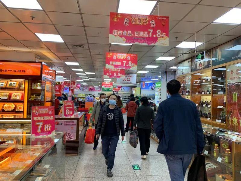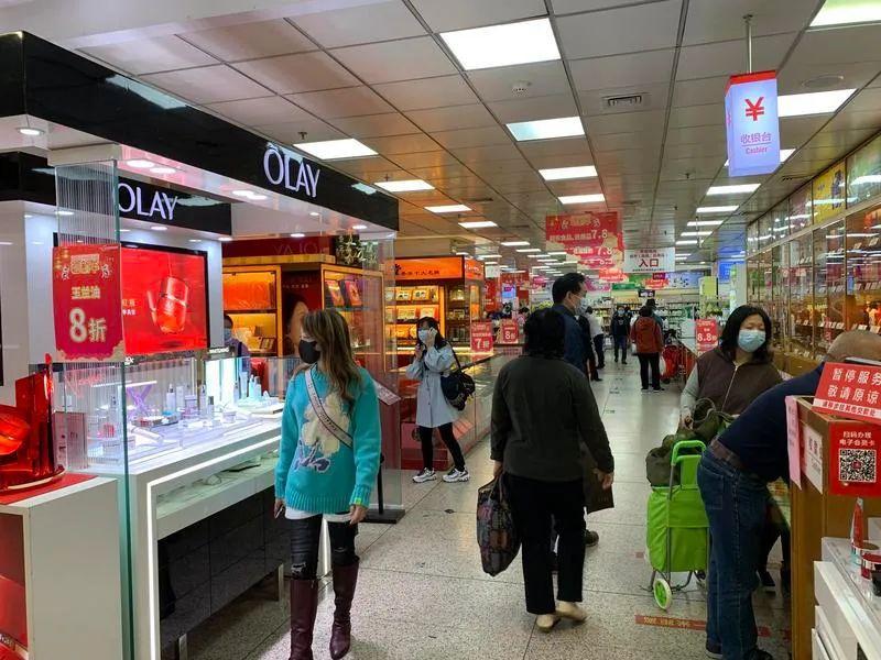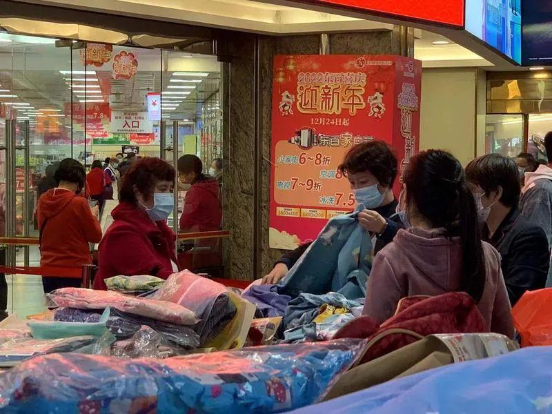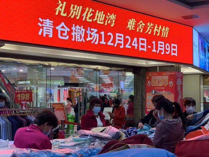 1月3日,记者在现场看到,不少市民和周边居民都趁着假期来到东百花地湾店“扫货”,不少专柜前都排起了“长龙”,店内也挂满了各种促销标语。很多居民知道东百花地湾店即将停止营业的消息,都感到很惋惜和不舍,言语中充满回忆和感情。