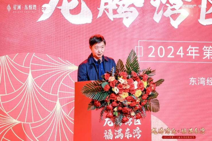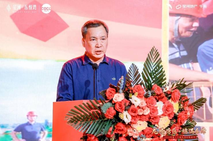 随后,东湾村党委书记、经济联合社理事长黎叶佳先生上台发表致辞,他首先对上级党委政府、星河控股集团及村中各知名人士、社会各界合作伙伴等诸多善长仁翁鼎力支持赞助、热心敬老致以谢意。黎书记表示,有大家的支持和关心,他坚信,东湾的集体经济收益会不断壮大,大家的福利会不断增加,老人的生活更有保障。