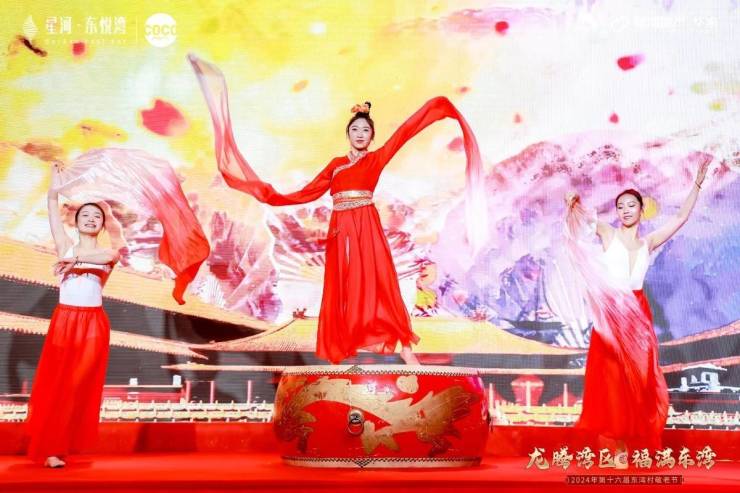 本次活动以一支鼓上舞《颂韵》温情开场,相得益彰的鼓点和旋律,一席水袖翩翩起舞,踏着鼓动的旋律展现婀娜身姿,以曼妙之姿尽显气势磅礴,让现场的老人们赞叹不已。随着主持人悦耳之声,第十六届东湾村敬老节温馨启幕。