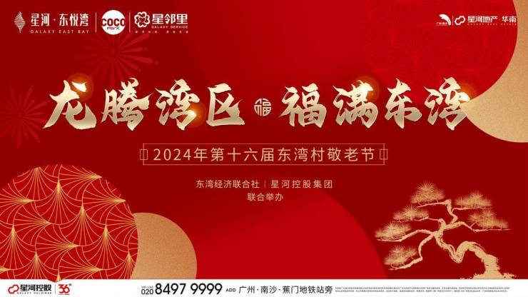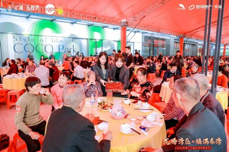 1月12日晚,一场热闹、温馨的宴会,让南沙东湾村这块土地又一次洋溢着幸福的氛围。由东湾经济联合社和星河控股集团联合举办的“龙腾湾区,福满东湾 ”——第十六届东湾村敬老节在南沙星河COCO Park外广场隆重举行。现场座无虚席,南沙区人大、南沙街街道办、黄阁镇、东湾村两委班子、星河控股集团、星河地产集团、星河产业集团、星盛商业的各位领导及特邀嘉宾、东湾村父老乡亲们共聚一堂,共享幸福美好时光。