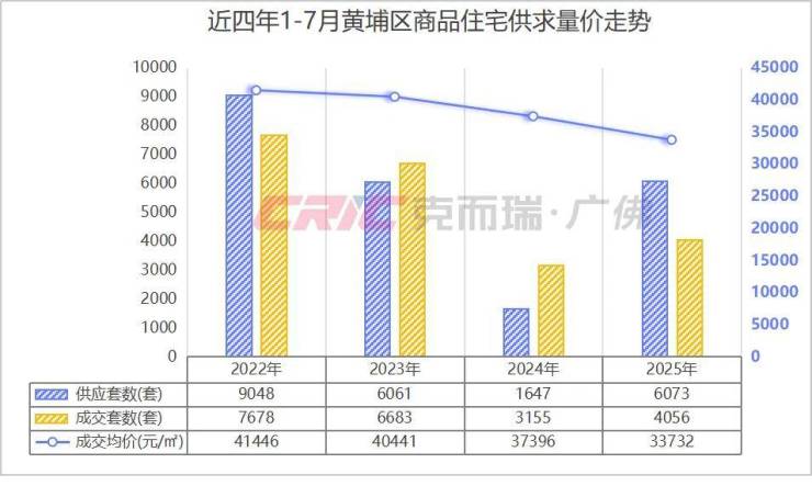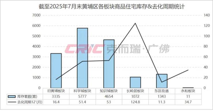 也正因如此,克而瑞数据监测显示,截至2025年7月末黄埔区商品住宅库存16192套,去化周期32.2个月。