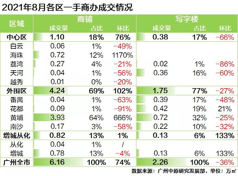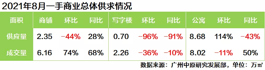 一手商办:后期促销加推助力,公寓成交保持活跃8月广州商业氛围转淡,写字楼大宗交易减少,商铺市场依靠批量网签冲高,公寓市场前半个月成交弱,后期促销加推带动市场成交氛围,整体表现良好。