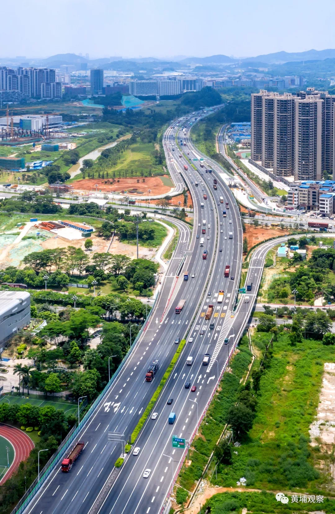同时,现有双向十车道,再扩建成双向十八车道,分上下两层设计。其中,上层设计为双向八车道,下层由于包含香雪出入口辅道,设计为双向十车道。