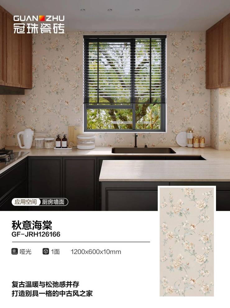 ☑ 花砖通过双通道功能墨水及喷墨技术的应用,使得纹理脉络清晰凹凸有致,与素砖风格统一;