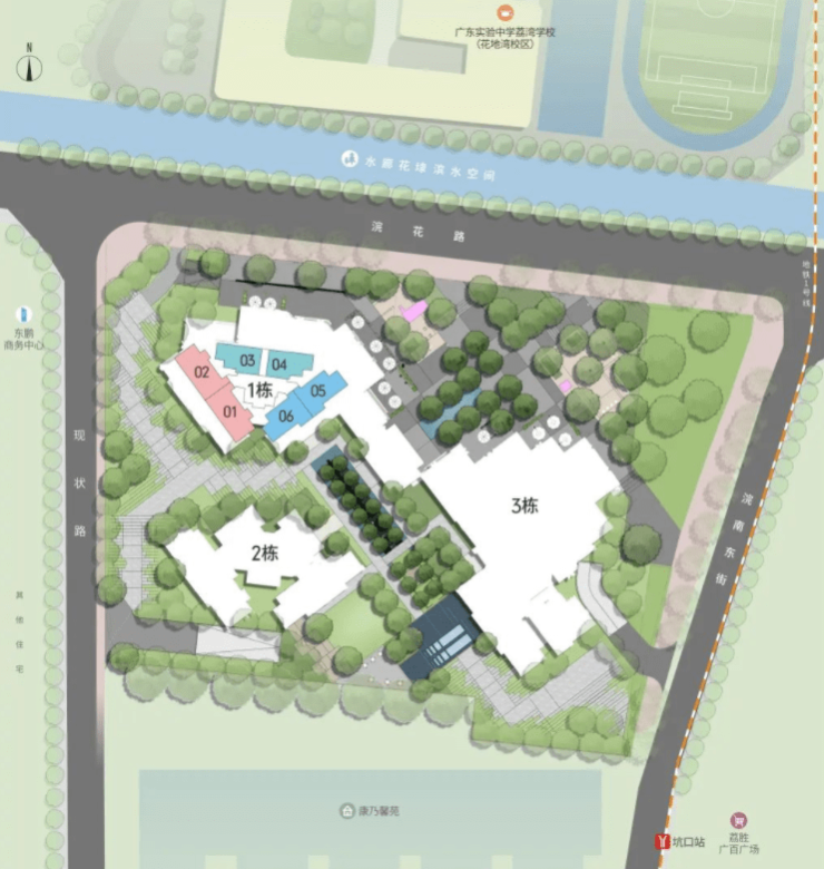 再看中海浣花里一盘,位于花地湾,步行约300米可到地铁坑口站,出行相当便利。