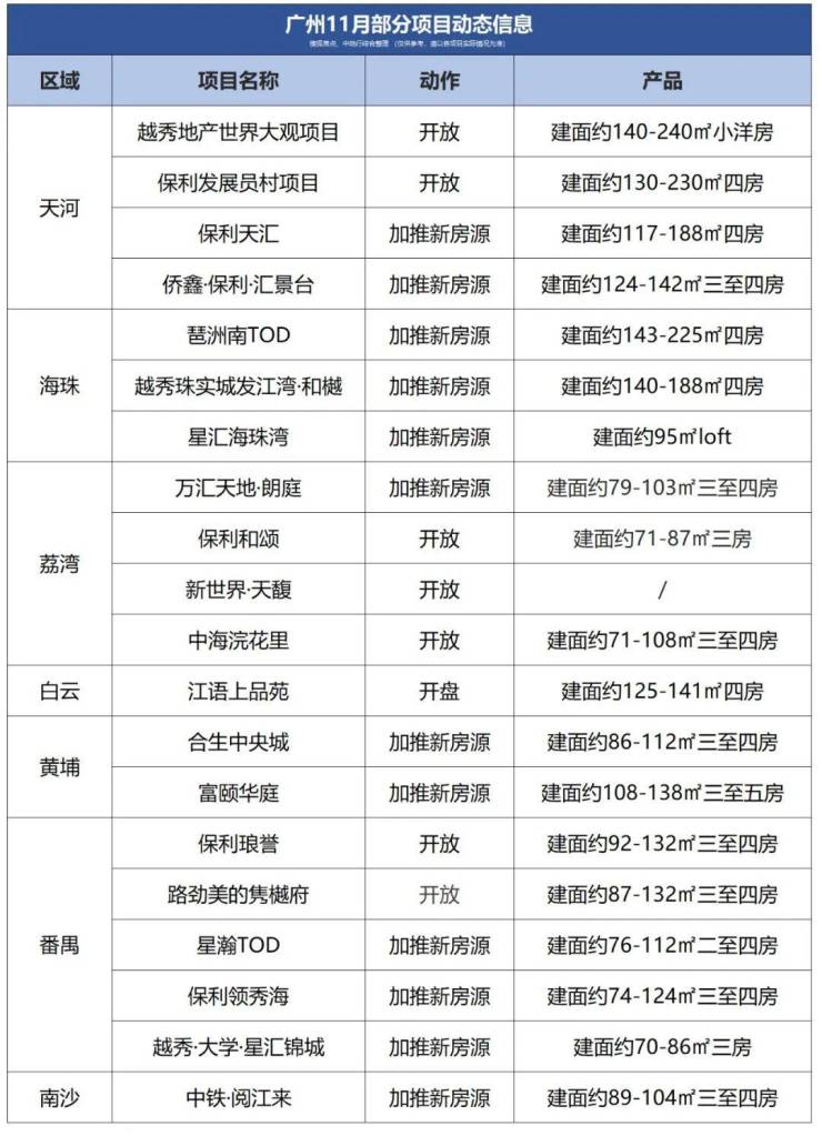 此外,星瀚TOD、保利领秀海、越秀·大学·星汇锦城,也将在11月加推新货。