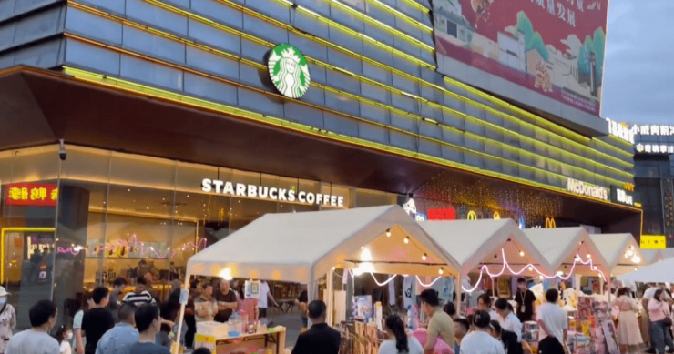 号称“板块潜力风向标”的麦*劳、“小资代表”星*克、 “烟火气代表”的烧烤生蚝、“人情味代表”的川湘火锅、“全能选手”华**家以及“打折狂魔”钱*妈……各地菜系和各种便民服务在这边都能找到。
