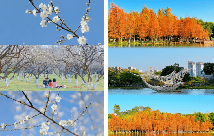 穿过峻泰路往前走,就到了会议中心站点,这站点连通了3个大公园,每逢1月能看梅花的“市民广场”、每年2-3月能在樱花树下野餐的“创业公园” 和一年四季都能赏花散步的“市民公园”,即使是照相小白,随手一拍,都能出片!