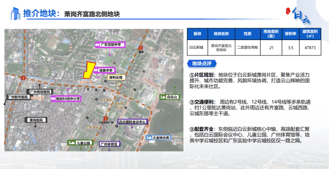 除了教育升级之外,本次推介还有另一个显著特点,即小体量地块众多。有7宗建筑面积在10万平方米以下,萧岗齐富路北侧地块、衡器厂地块甚至仅有4万余平方米,充分契合当下房企拿地资金占用少、项目去化快的需求,为市场量身定制,展现白云区在宅地供应上的诚意和决心。
