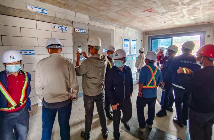 会议结束后,各单位领导及观摩人员一行跟随项目指引开始工程质量观摩。碧桂园凤凰台项目采用较新的高质量建造体系,将建筑品质与安全放在排名前列位,始终致力于为人民建造更好更适于居住的好房子。各参会人员通过现场实地观看和体验,对建设工程质量的制度化、标准化、规范化、精细化、信息化管理有了直观的感受,纷纷对碧桂园质量安全管理工作提出赞扬。
