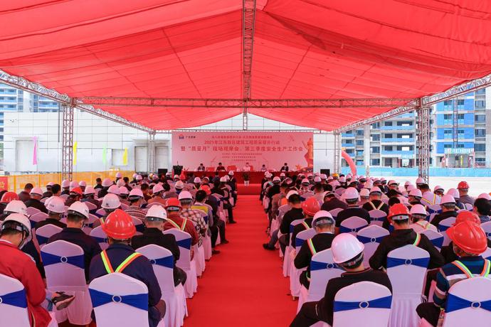 为切实贯彻省、市有关工程质量、安全生产工作要求,分析江东新区安全生产形势,落实主体责任,加强工程质量安全生产管理,大力推进质量强国建设,防范安全生产事故,2021年10月31日在河源碧桂园凤凰台项目召开江东新区第三季度安全生产例会暨“质量月”观摩交流会。