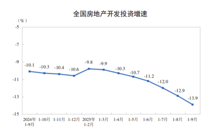 此外,据国家统计局数据,1—9月份,全国房地产开发投资67706亿元,同比下降13.9%(按可比口径计算);其中,住宅投资52046亿元,下降12.9%。