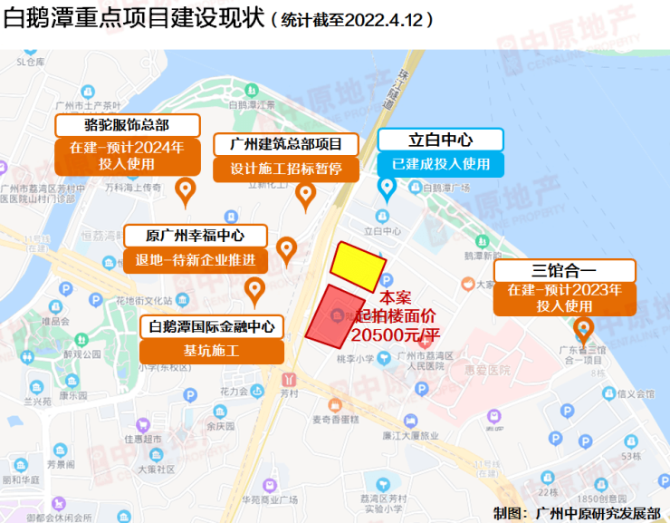 而今年初拿地开发的广州建筑总部项目,近期暂停了设计施工招标,亦是引起外界猜测,故白鹅潭未来产业前景仍不明朗;