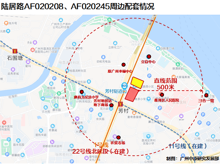 生活配套方面,地块处于芳村配套较成熟的区域,芳村地铁站周边小型超市、餐饮、肉菜市场一应俱全。